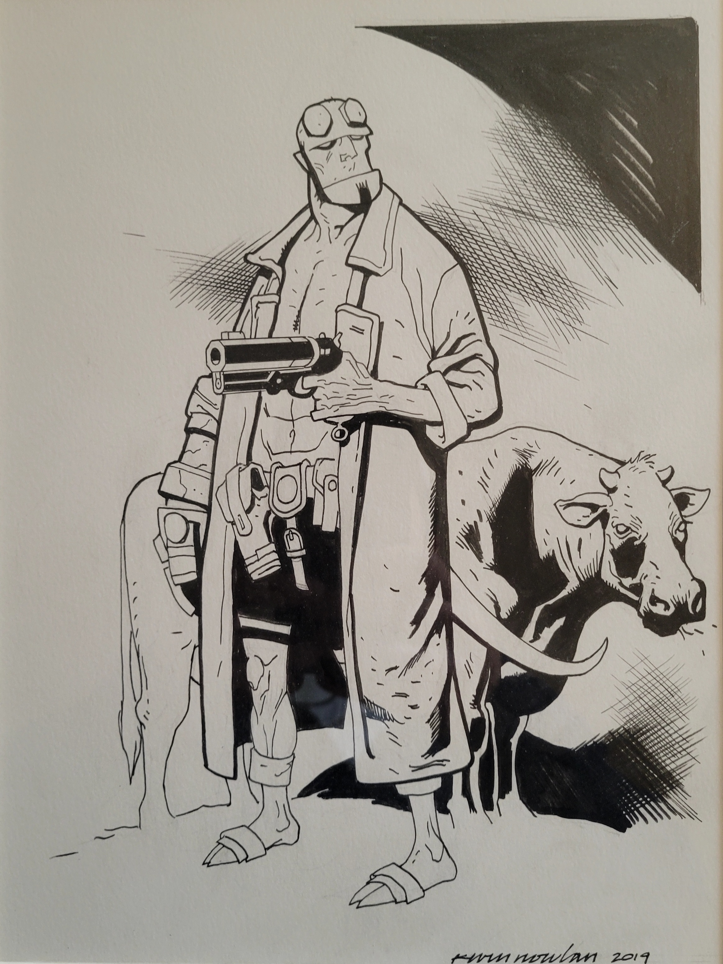 Price: $500.00 Hellboy with Cow - Graphite and Ink on Art Board 9x12 Category: SketchesArtist: Kevin Nowlan